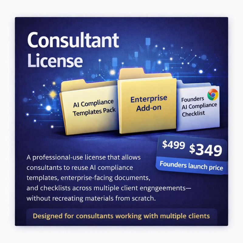 The Consultant License is intended to support professional reuse, not resale of the templates themselves. It provides a clear, scalable foundation for consultants who want to deliver AI compliance work efficiently, consistently, and credibly.